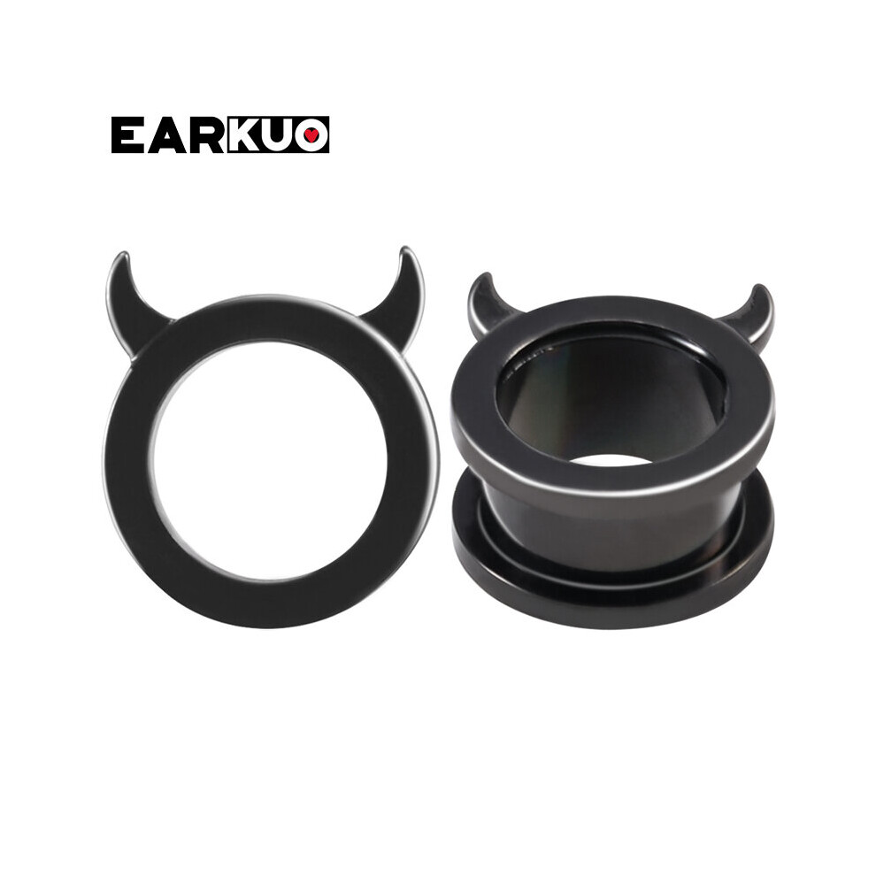 (Auburn) EARKUO Stainless Steel Ear Plugs Tunnels Stretchers Body Piercing Jewelry Earring Expanders Gauges 2PCS