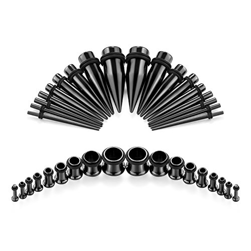 50 Pcs Ear Stretching Kit, Acrylic Pointed Ear Expansion Eit, Ear Stretcher, Ear Gauges, Taper Ear Expanders Ear Plug Tunnels, Ear Piercing Stretchers for Women Girls Daily Wear (Black)