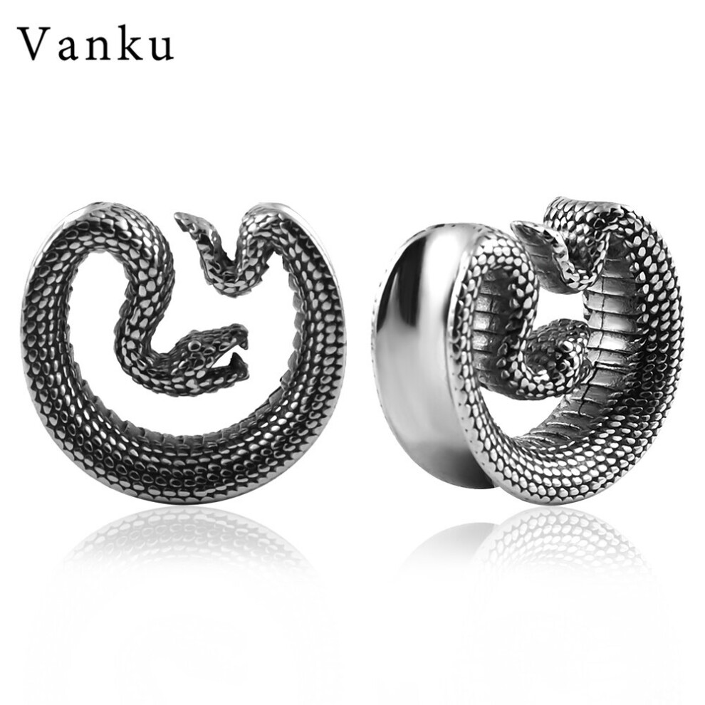 (Black) Vanku 2PCS Stainless Steel Snake Saddle Ear Plugs Tunnels Ear Piercing Plugs Stretchers Body Jewelry Gauges Tunnels Expanders