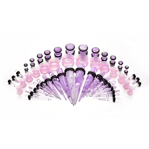 vogem 50Pcs Violet Ear Stretching Kit 14G-00G Ear Tapers and Silicone Tunnel Marble Pattern Ear Stretchers Expander Piercing Set Body Jewelry