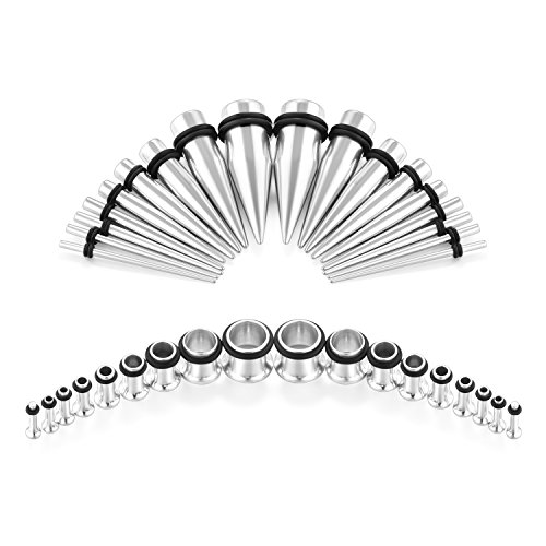 Jadeshay Ear Stretching Kit,36PCS Ear Stretchers Stretching Tunnels Kit Stainless Steel Ear Expander Stretching Tapers and Tunnels (Silver)