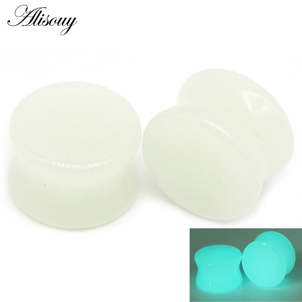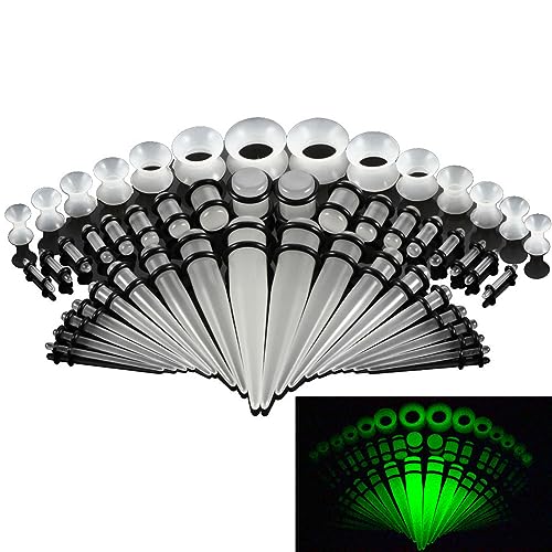 vogem 50Pcs Fluoresce Ear Stretching Kit Acrylic Tapers/Plugs and Silicone Tunnels 14G-00G/1.6mm-12mm Ear Piercing Stretchers Body Perforated Jewelry Unisex(Luminous)