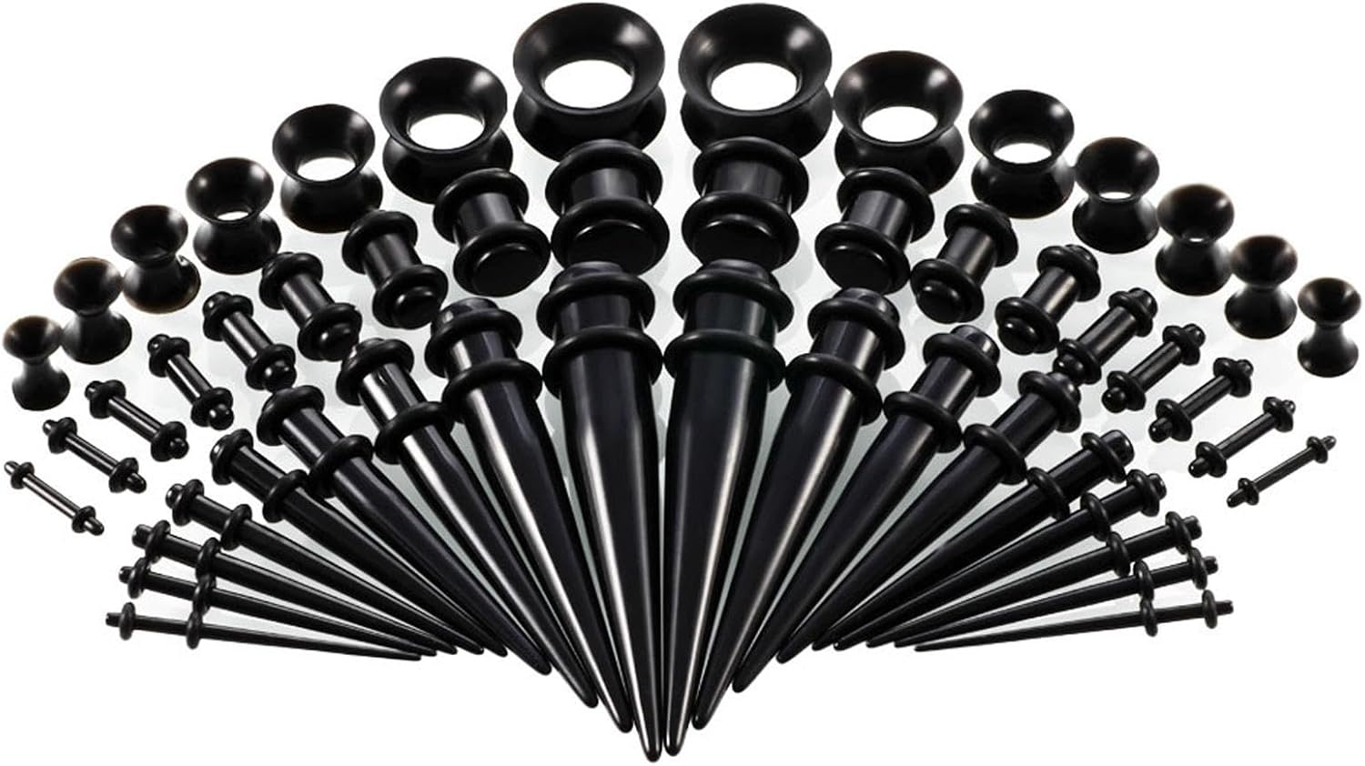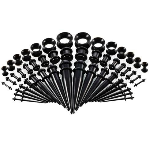 BNXF 50 Pcs Ear Stretchers Kit Body Piercing Jewelry,Acrylic Tapers with Double O- Rings,14G-00G Acrylic Tapers and Plugs,Taper Kit,Ear Stretching Kit For Body Piercing Jewelry(Black)