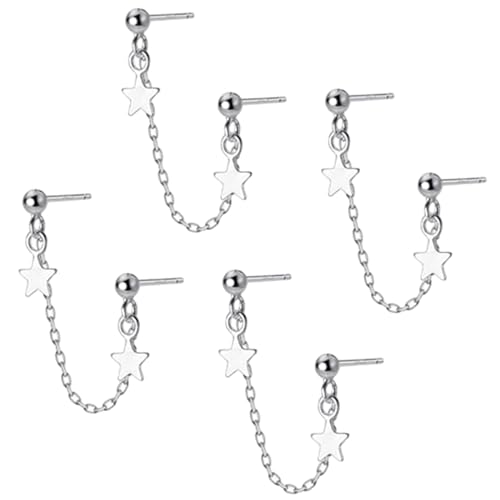 Vexquivera 4PCS Star Dangle Chain Earrings, Double Piercing Earrings, S925 Sterling Silver Minimalist Tassel Chain Ear Studs, Star Earrings for Women Girls Sensitive Ears,