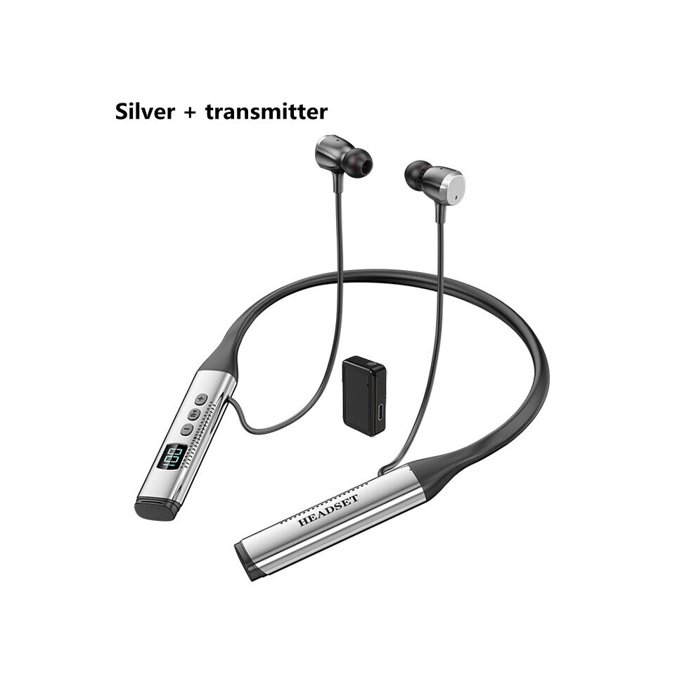 (a-Silver - transmitter) TWS Wireless Bluetooth 5.1 Headphone Neckband Earphones Sports Running Headset with Mic Live Streaming Karaoke Earbuds TF Car