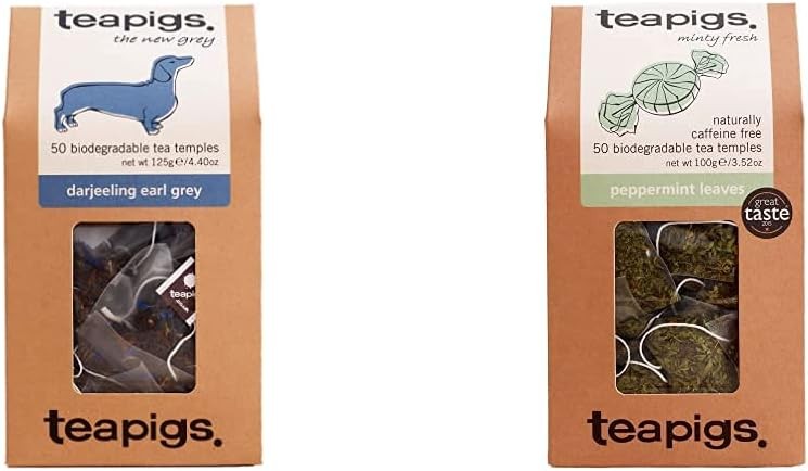 Teapigs Darjeeling Earl Grey Tea Bags Made with Whole Leaves (1 Pack of 50 Tea Bags) & Peppermint Herbal Tea Bags Made With Whole Leaves (1 Pack of 50 Teabags)