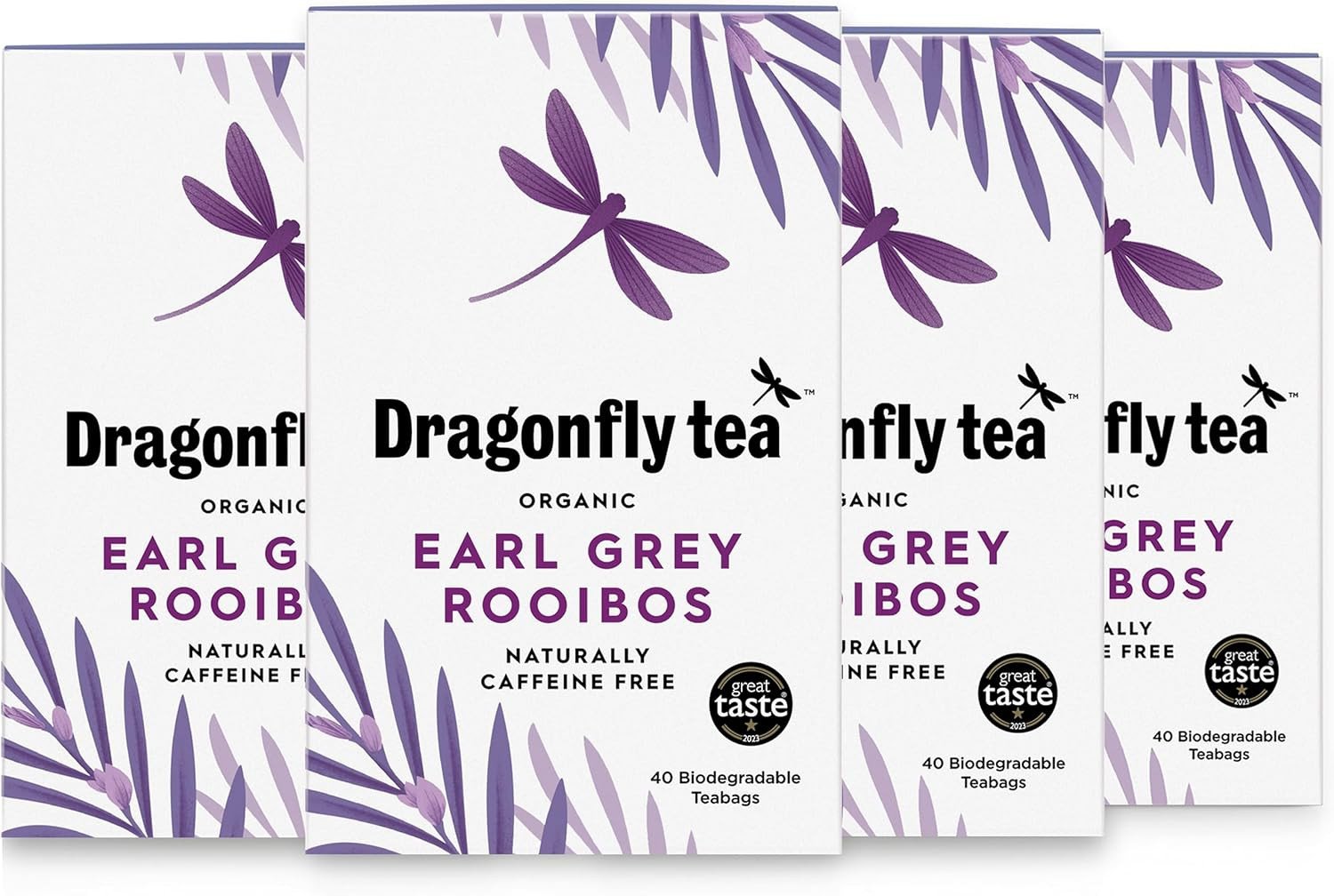 Dragonfly Organic Earl Grey Rooibos Tea, Pack of 4 X 40 (160 Teabags) Naturally