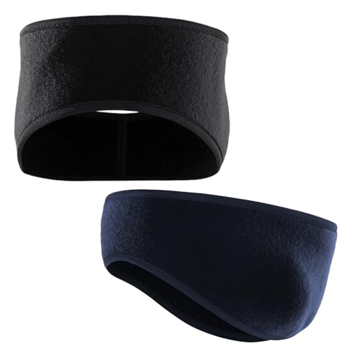 2 Pcs Fleece Ear Warmers Headband, Soft and Comfortable Ear Muffs, Winter Earmuffs for Women and Men for Cold Weather Running Cycling Ski (Black and Blue)