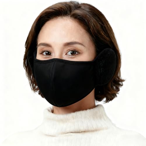 TASBER Winter Face Mask with Earmuffs for Women, Warm Windproof Earmuffs Mask, Thick Dustproof Breathable Mouth Cover Half Face Earflaps for Men Women Teen Girls Boys (Black)