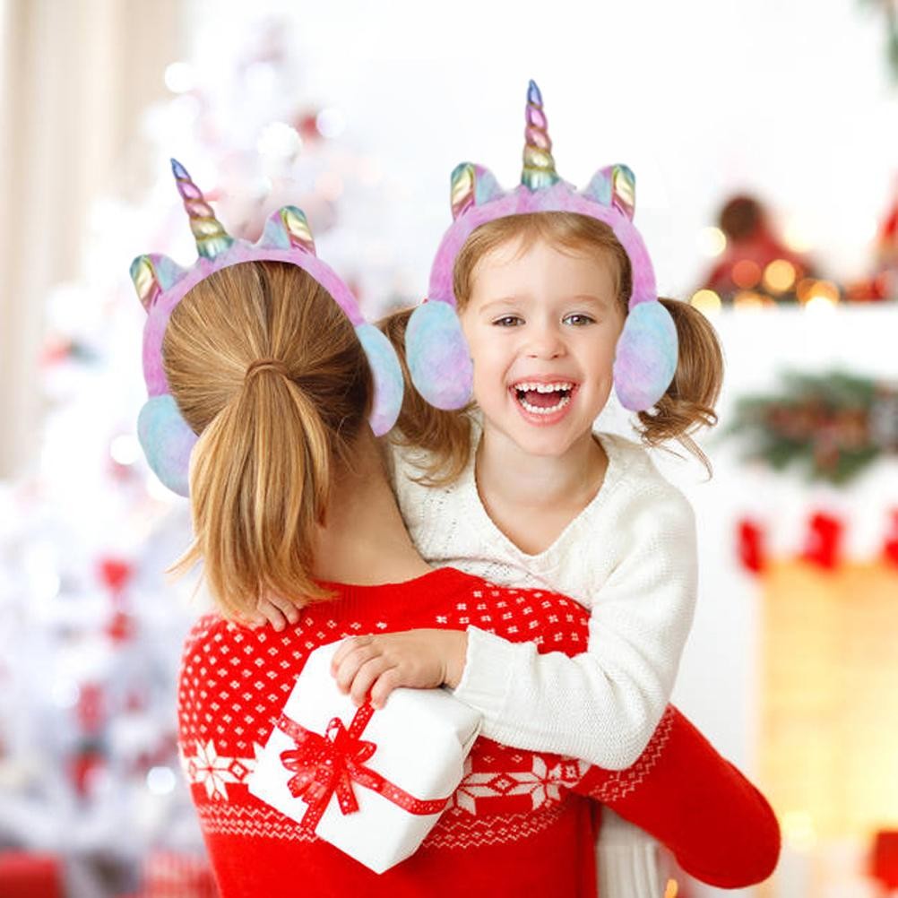 Foldable Unicorn Earmuffs For Girls Kids Women Soft Plush Winter Ear Warmersrainbow