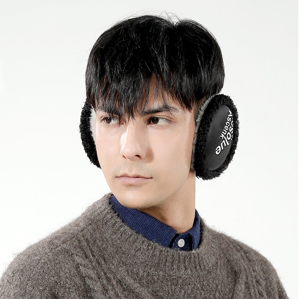 Winter Fleece Ear Warmers Foldable Earmuffs for Women Men Cold Weather Protection Adjustable Comfortable Soft Lamb Wool Black Beige Outdoor Skiing Running Cycling (Black)