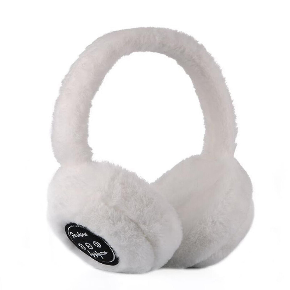 (White) Bluetooth Earmuff Warm Plush Wireless Music Earmuffs Unisex For Women Men