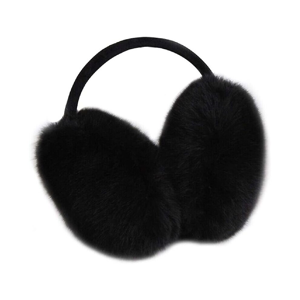 LCXSHYE Winter Faux Fur Ear Warmers Cute Warm Foldable Outdoor Earmuffs For Women Girls - black - Large