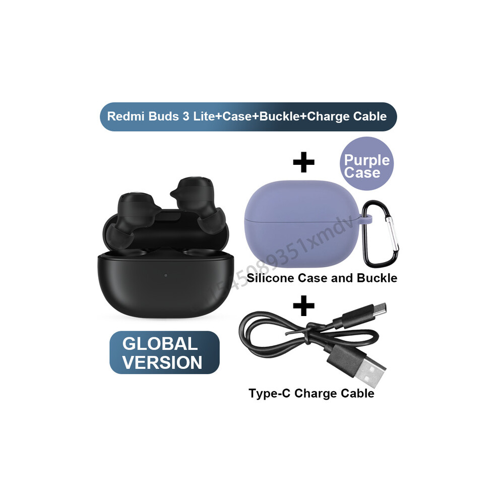 (a-purple case cable) Xiaomi Redmi Buds 3 Lite TWS Bluetooth Earphone Buds3 Pro Youth Edition Cat Ears Touch Wireless Earbuds With Mic HD Stereo Sound