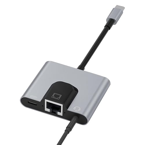 USB C To Ethernet Adapter,Gigabit Speed Network Dock,Multiport 3.5mm Earphone Jack Laptop Ethernet Adapter Supports Voice Calls | for Computer Phone Travel Home Workplace