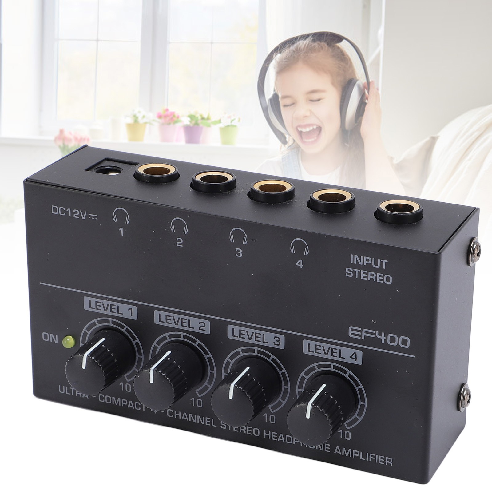 4 Channel Headphone Amplifier Metal Stereo Sound Earphone Splitter With Power