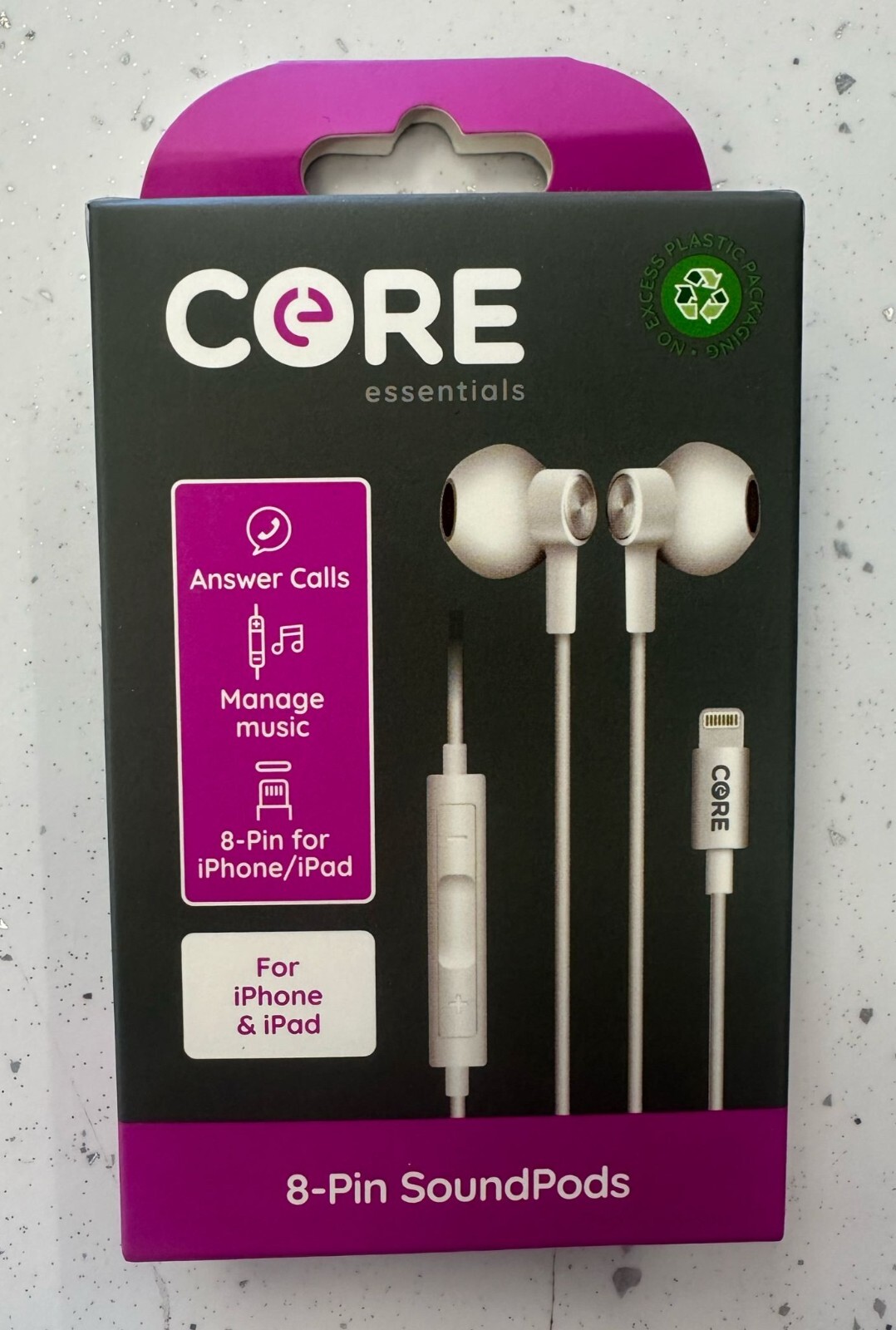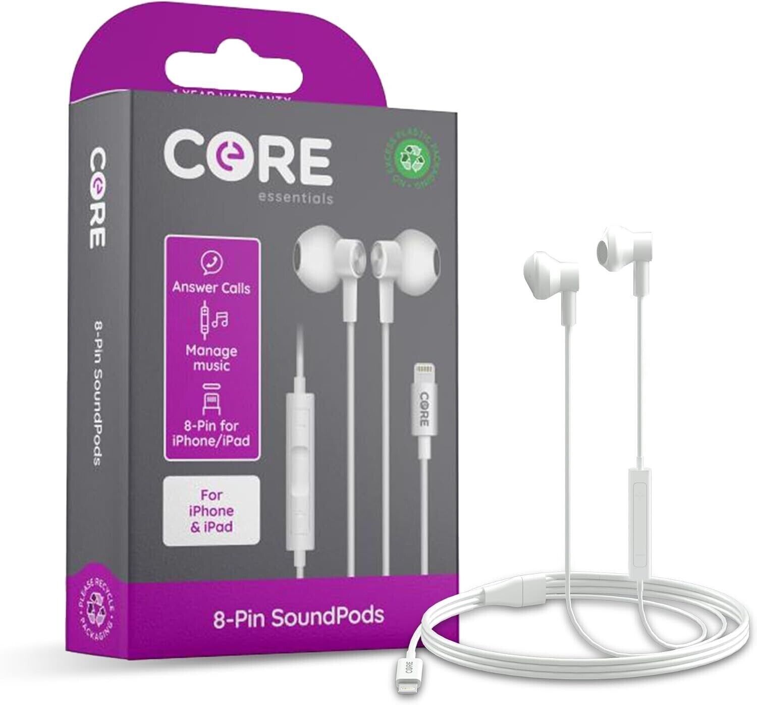 Core SoundPods White 8-Pin Wired Microphone Volume Control Earphones for iPhone