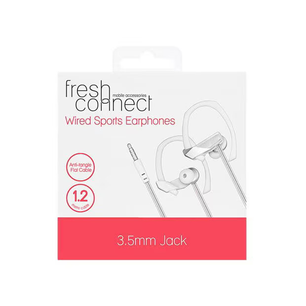 Fresh Connect Wired Sports Earphones 3.5mm Jack 1.2m Cable Headphones WHITE