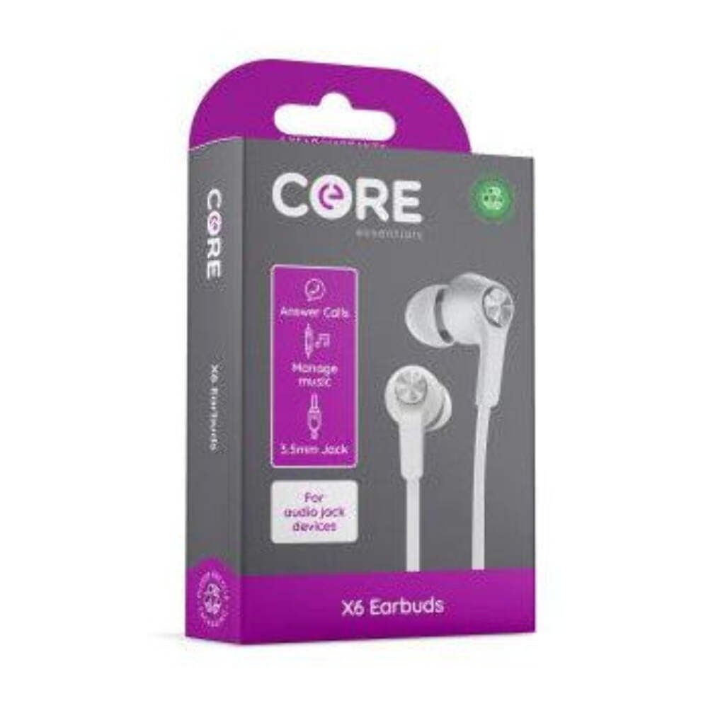 Core X6 Wired Earphones, 3.5mm Jack Plug, White