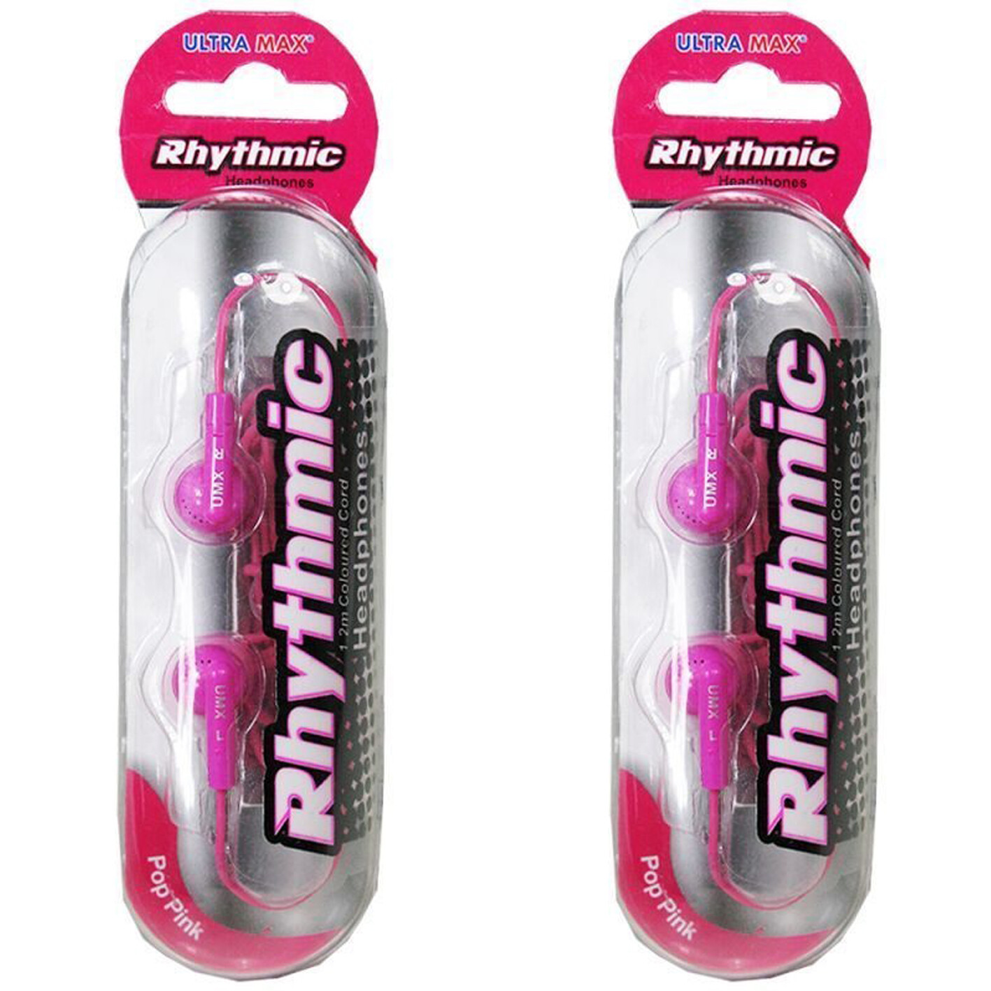 2X ULTRA MAX RHYTHMIC STEREO HEADPHONES / EARPHONES 3.5MM JACK - PINK