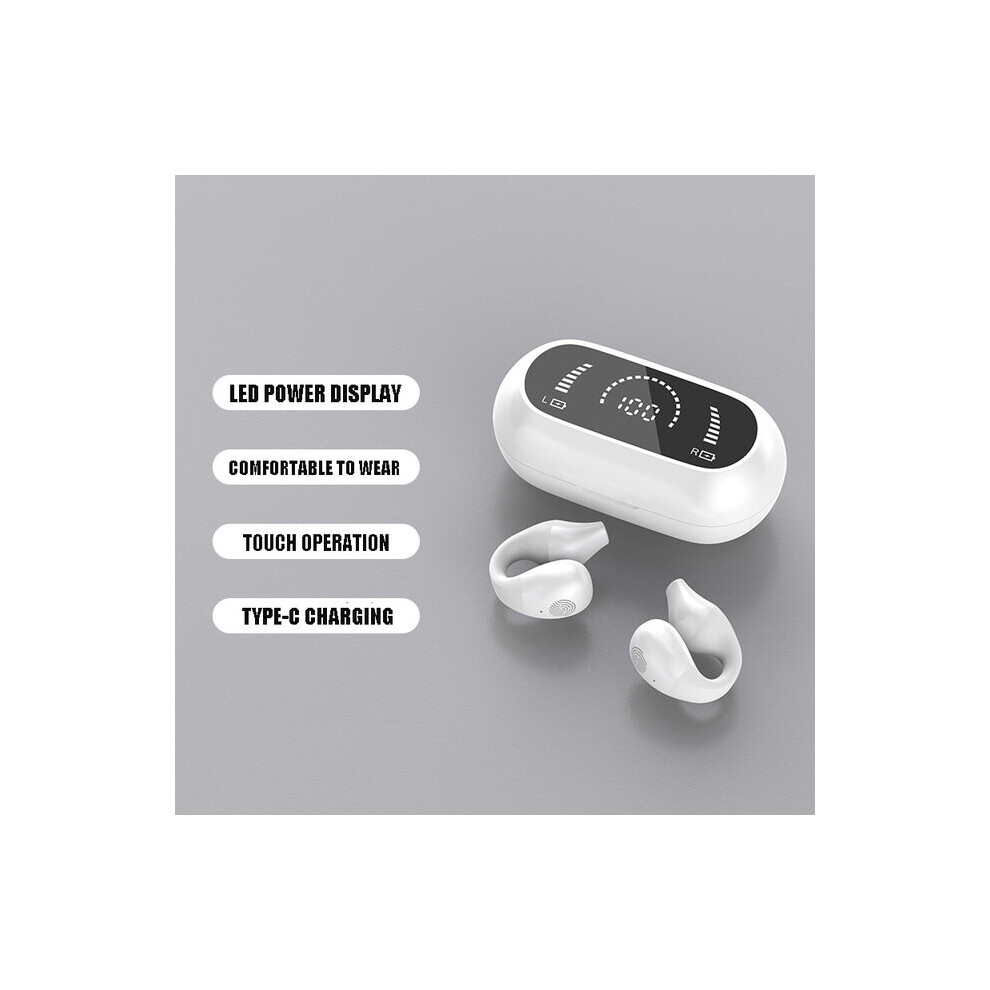 (a-White) TWS Wireless Bluetooth 5.2 Headphone Ear Clip In-ear LED Digital Display Sport Earphones Stereo Open Earbuds Driving Headset New