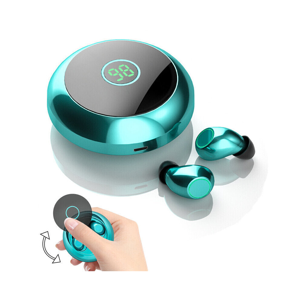 (Blue) TWS bluetooth Earphones Slide Open Headphones HIFI Stereo Waterproof Sports Headset LED Display Touch Earbuds with Mic