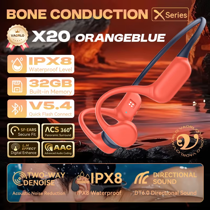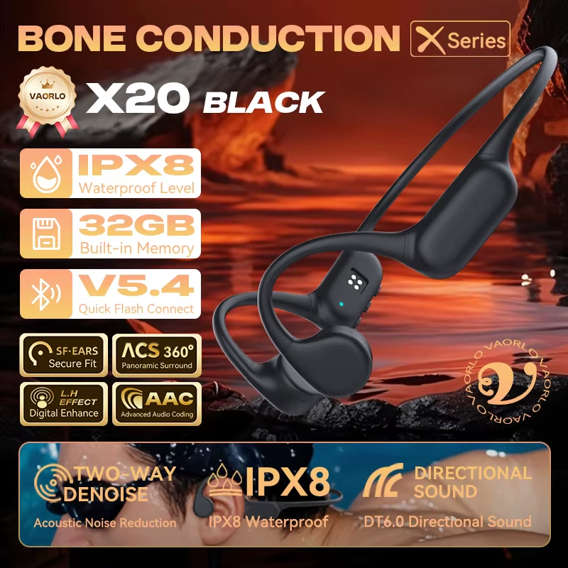 Guudsoud Swimming Headphones,Bone Conduction Headphones Bluetooth 5.4,IP68 Waterproof Open Earphones,Built-in MP3 Player 32G Memory, Wireless Sports Underwater Headphones for Swimming,Running,Cycling