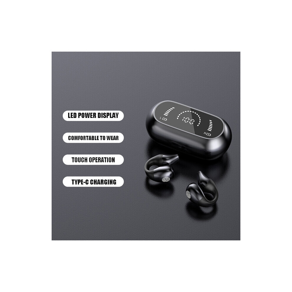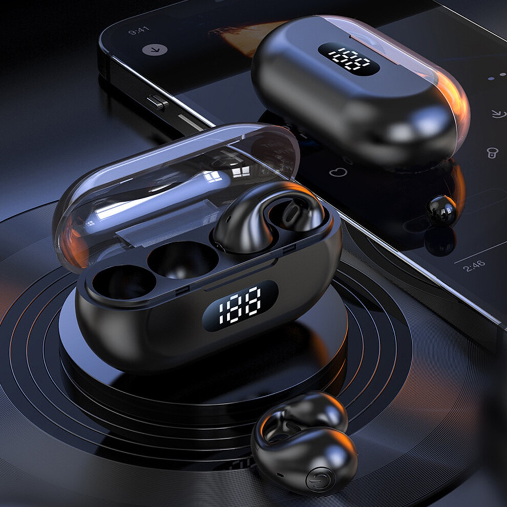 (a-Black) TWS Wireless Bluetooth 5.2 Headphone Ear Clip In-ear LED Digital Display Sport Earphones Stereo Open Earbuds Driving Headset New