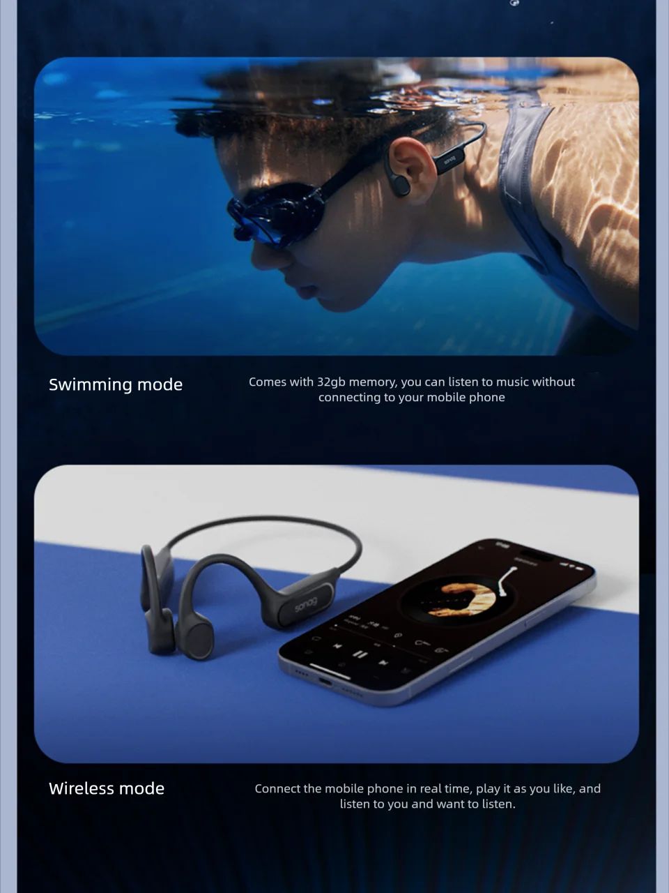 Sanag B33S IPX8 Swimming Headphones Bone Conduction Bluetooth Earphones Open Ear Choice 32GB Memory Wireless Headset MP3 Earbuds