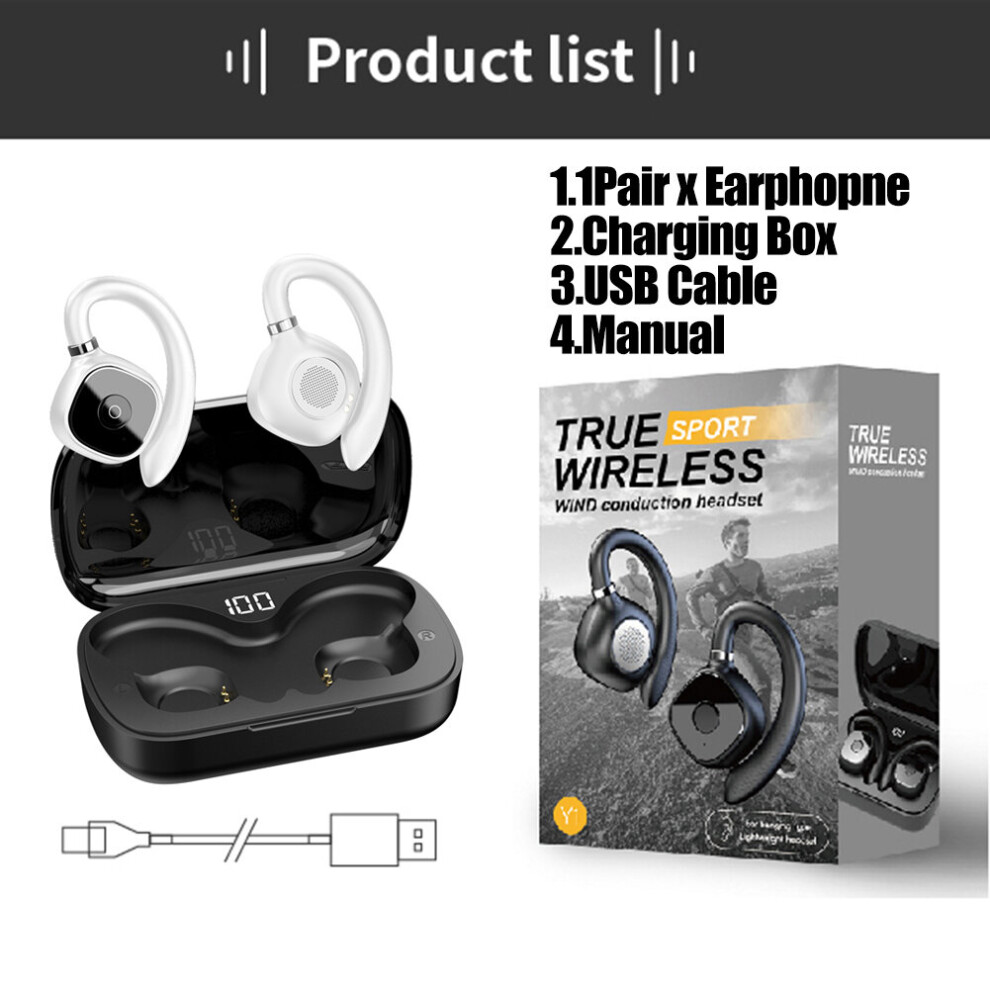 (White) blueteeth 5.0 Earphones Wireless Earbuds Open Ear For Headphones