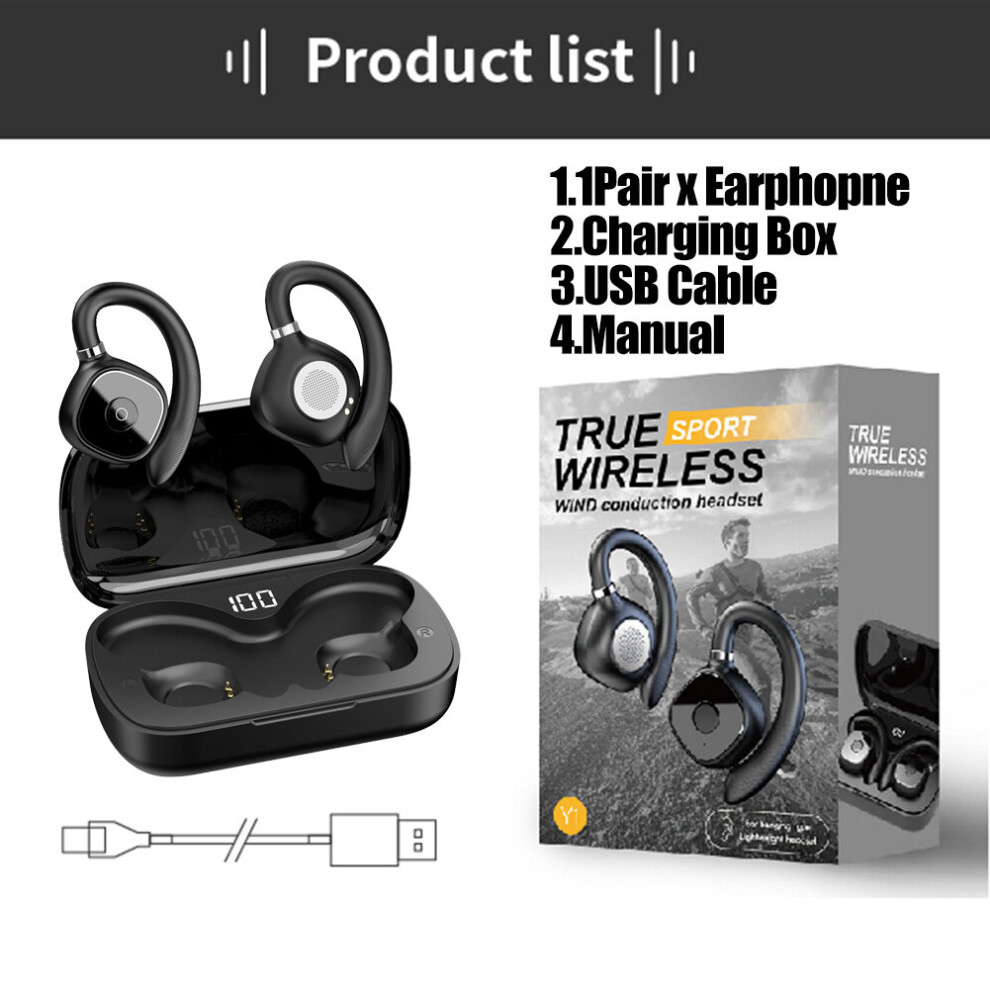 (Black) blueteeth 5.0 Earphones Wireless Earbuds Open Ear For Headphones