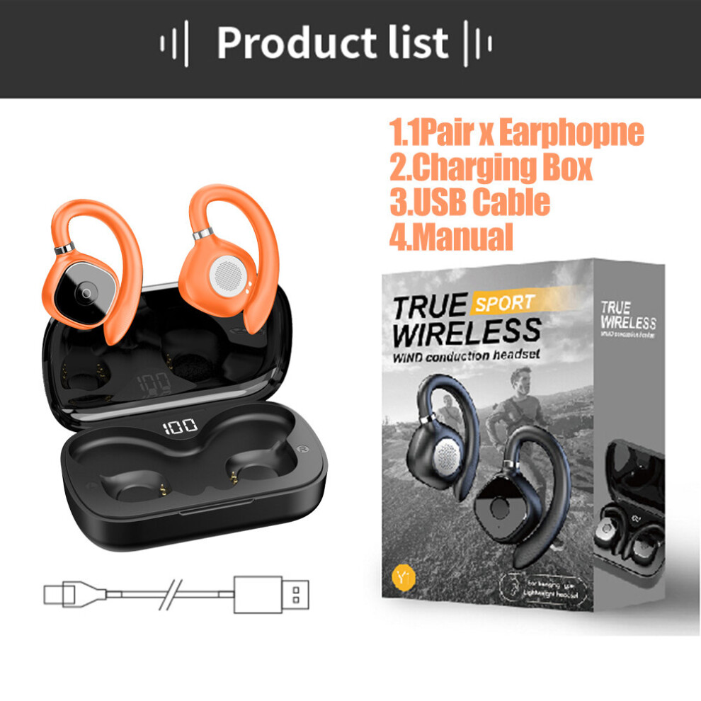 (a-Orange) Bluetooth 5.3 Earphones Wireless Open Ear Earbuds Stylish Sport Headphones HiFi Stereo Bass Noise Cancelling Gaming Headset