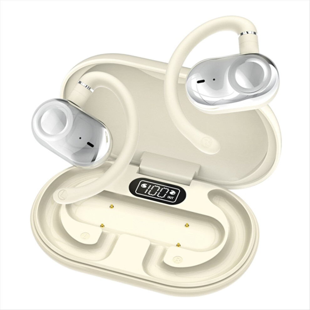 (Beige) blueteeth 5.0 Earphones Wireless Earbuds Open Ear For Headphones