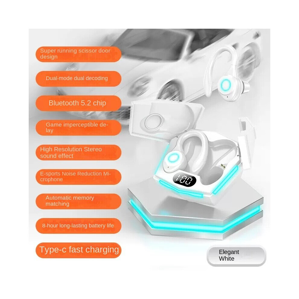 (a-White) 2023 New TWS Bluetooth 5.2 Gaming Earphone HD Call Earbuds Ultra Low Latency Earhook Music Sports Headset with Microphone