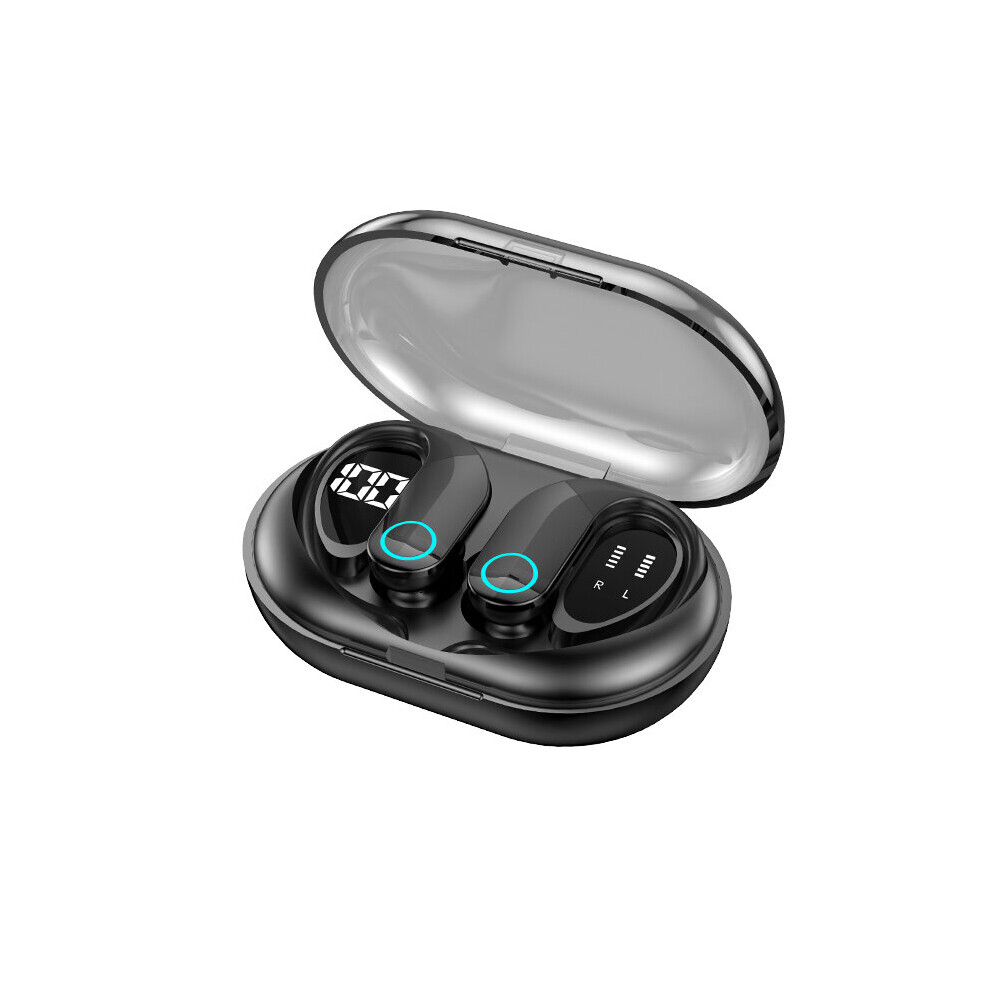 (a-Black) 2023 New Wireless Earphone S08 Smart Bluetooth Earbuds Earhook 45Hours Music Time LED Display Earphone Waterproof Volume Control