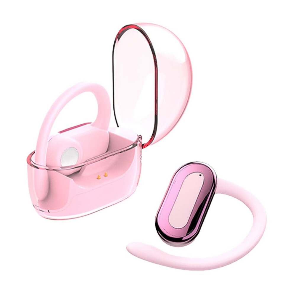 (Pink) bluetooth Business Earphone HIFI Noise Reduction HD Calling Zero Delay Wireless Earbuds Sweatproof 180 Rotatable Earhook Single Headphone with