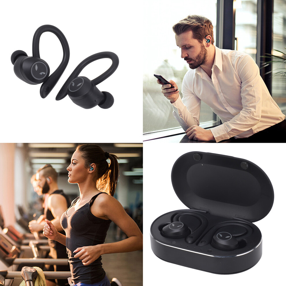 Bluetooth Earphone Waterproof Stereo Noise Cancelling Wireless Earbuds with Mic Earhook for Driving Sports Travel Black