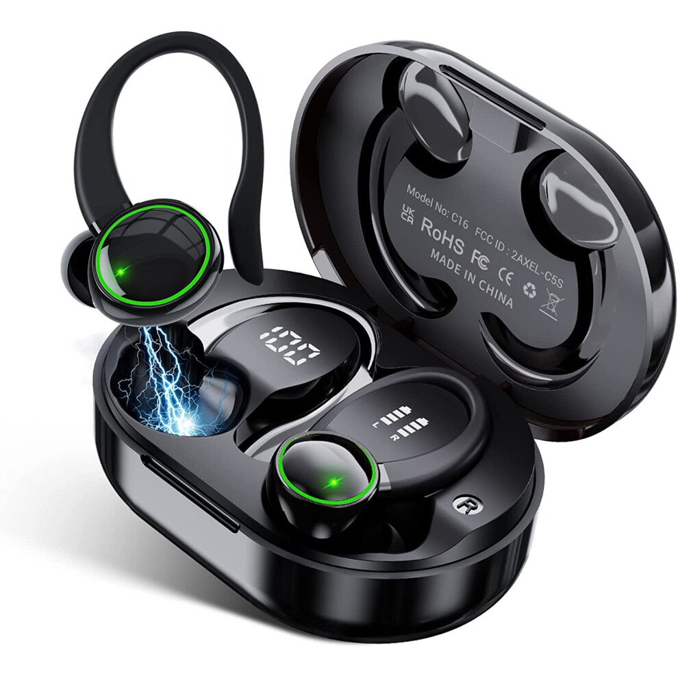 Wireless Earbuds with Earhook, Noise Cancelling, 70H Playtime, LED Power Display, BT5.3, Compatible with iOS Android