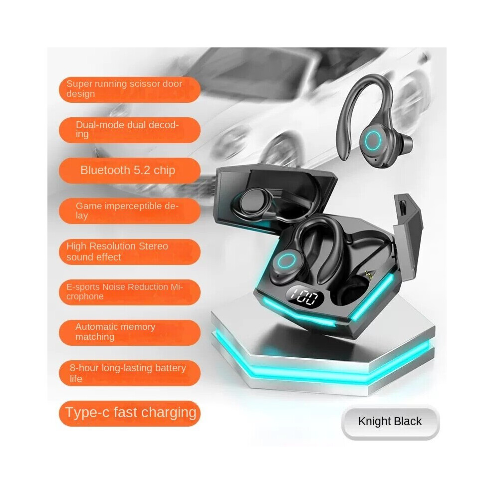 (a-Black) 2023 New TWS Bluetooth 5.2 Gaming Earphone HD Call Earbuds Ultra Low Latency Earhook Music Sports Headset with Microphone