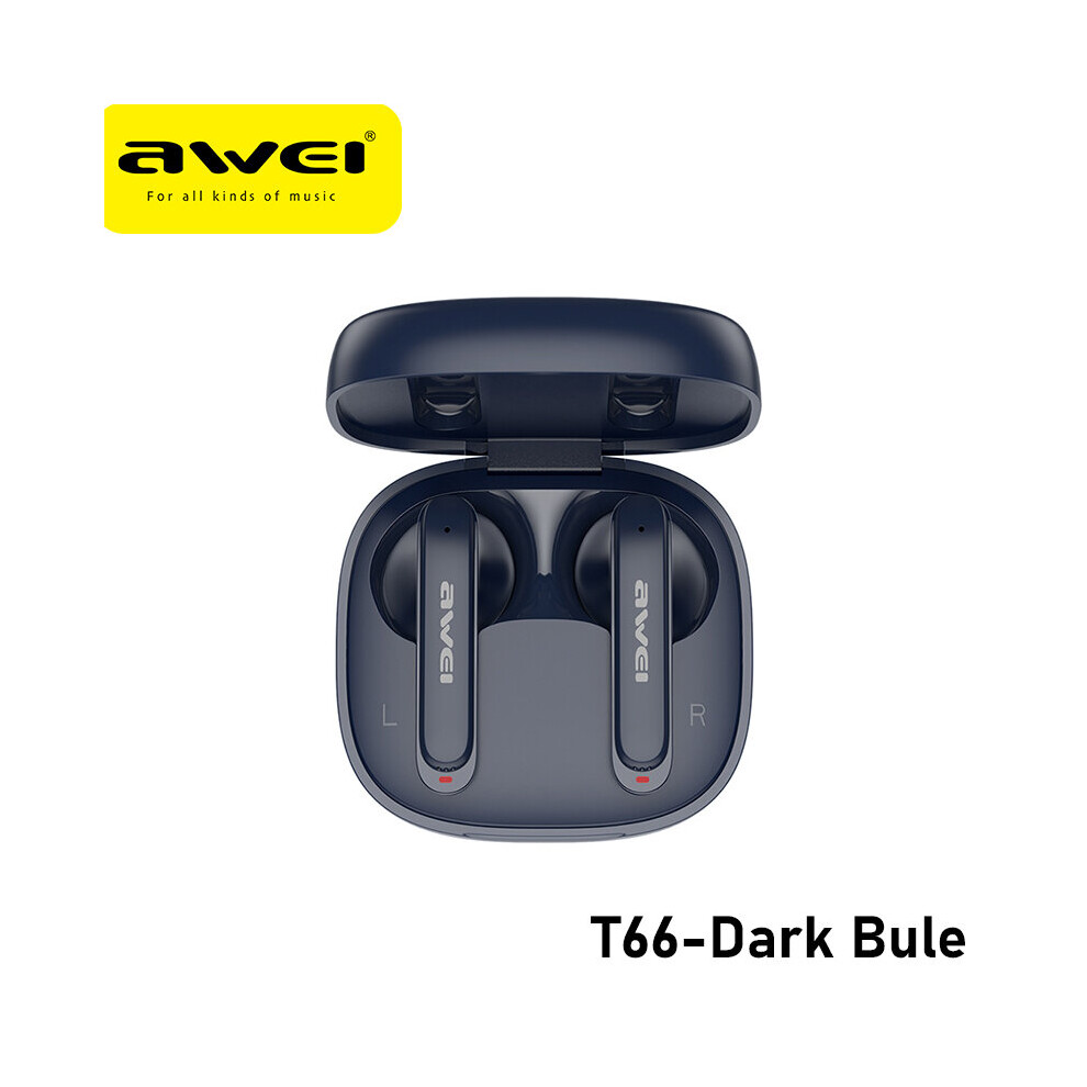 (a-Dark Blue) Awei T66 Bluetooth 5.3 Earphones TWS Wireless Earbuds Stereo Sports Earhook Headphones ENC Noise Reduction With Dual HD Mic