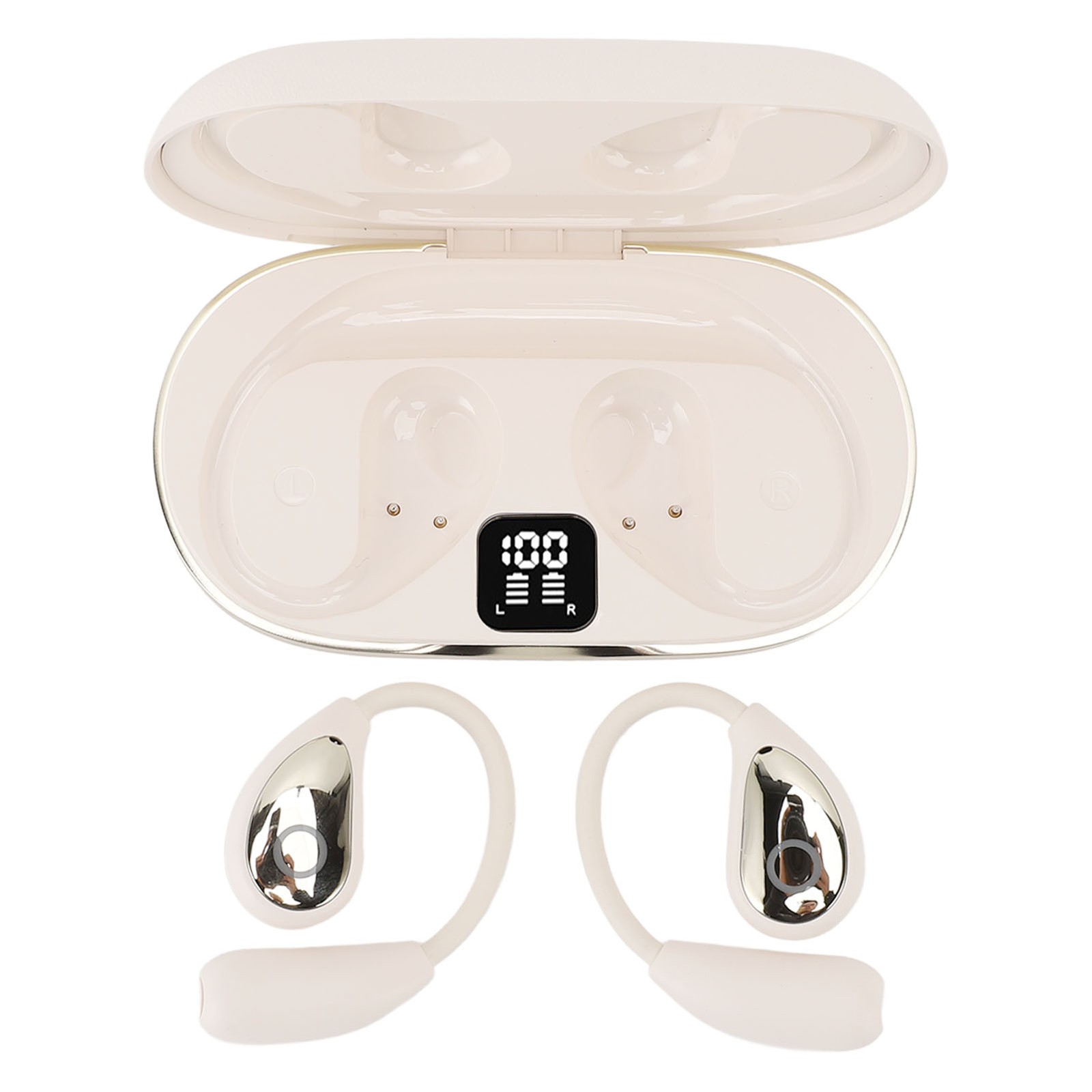 Wanfds Wireless Earbuds with Earhook, LED Power Display, Noise Cancelling, BT 5.4, Lightweight Over-Ear, Microphone for iOS Android