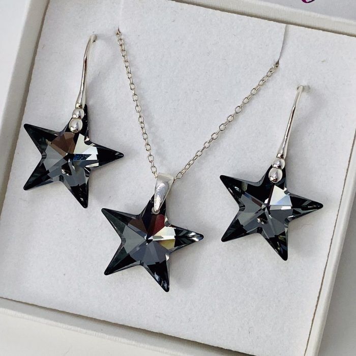 Silver Large 28mm SN Star Necklace And Earring Set Made With Austrian Crystals
