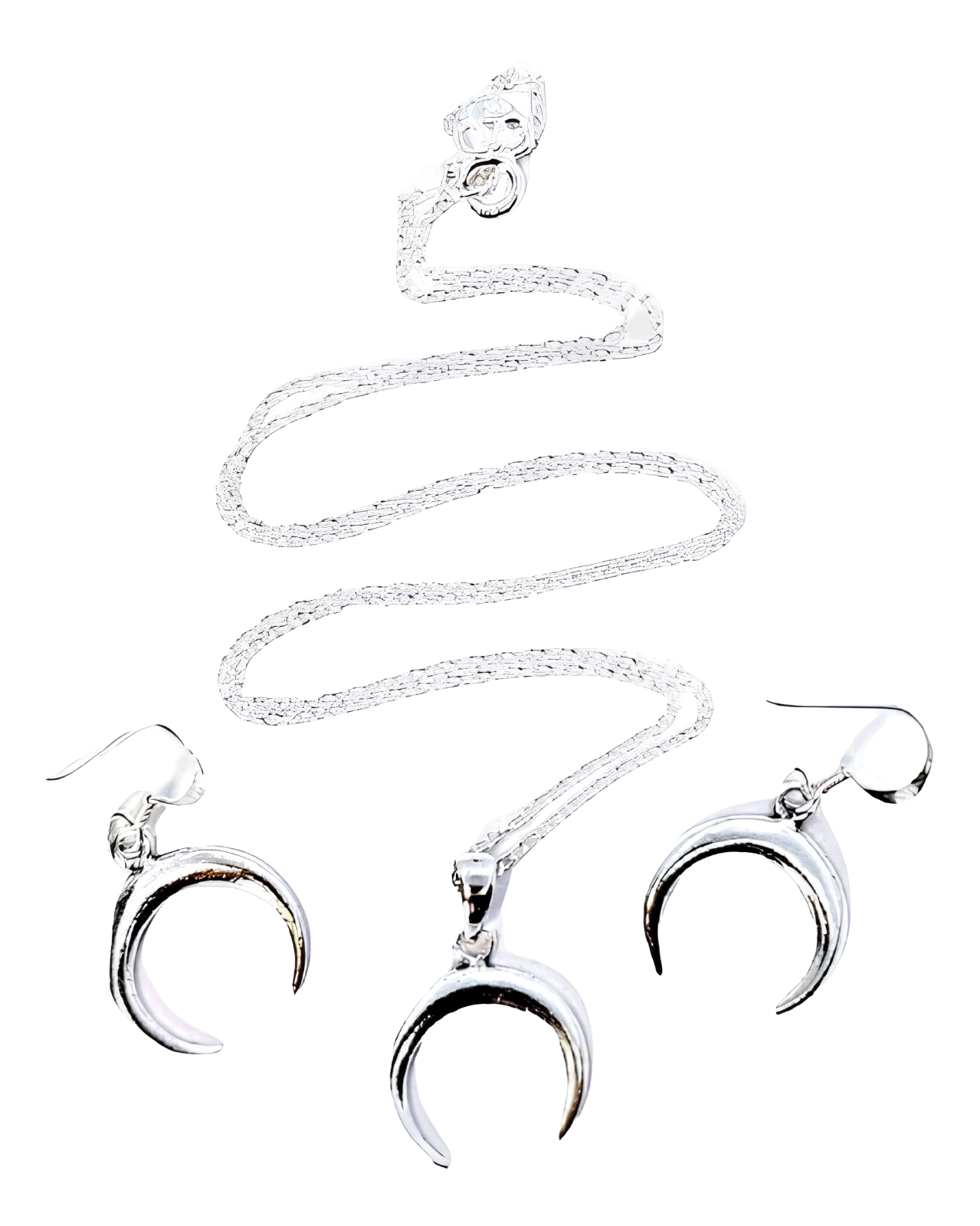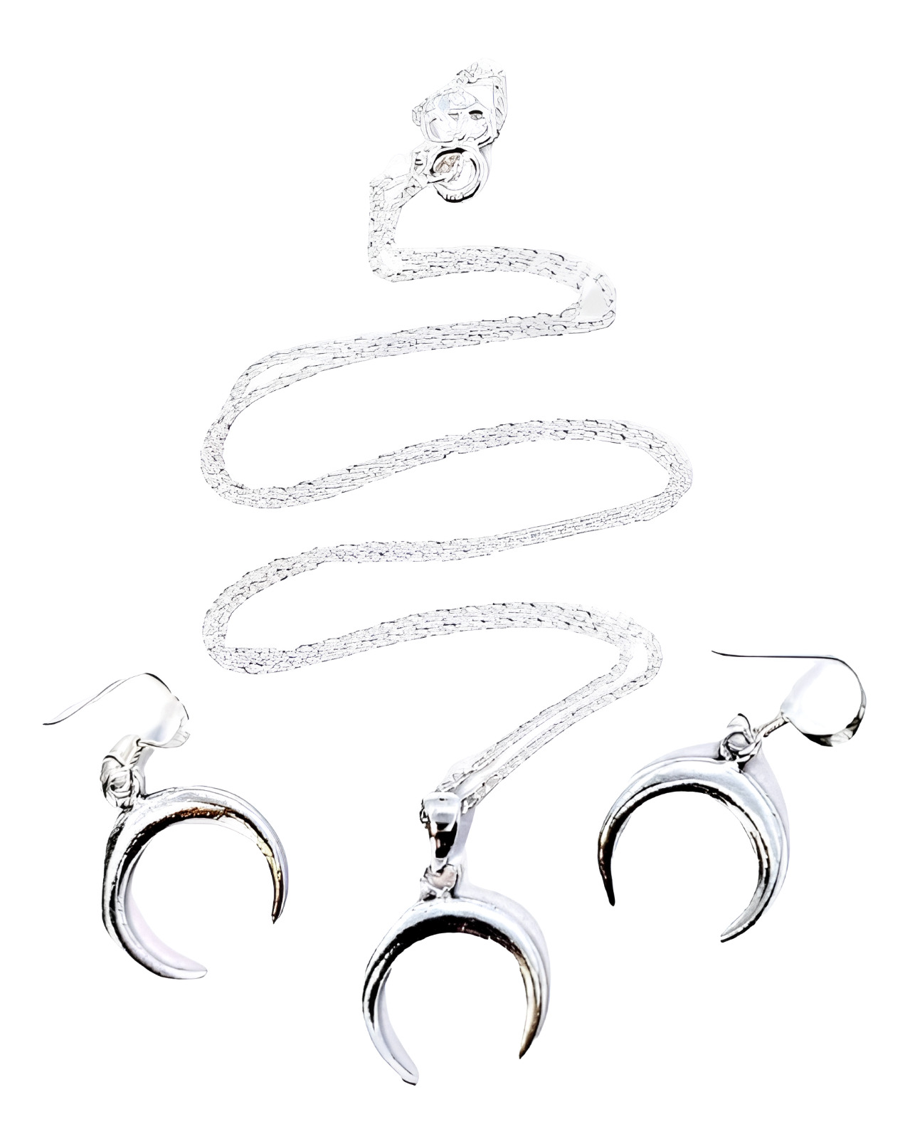 Crescent Moon Pendant Earring Necklace Set 925 Sterling Silver Jewellery & Box