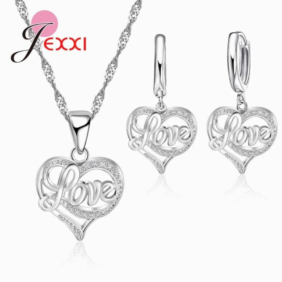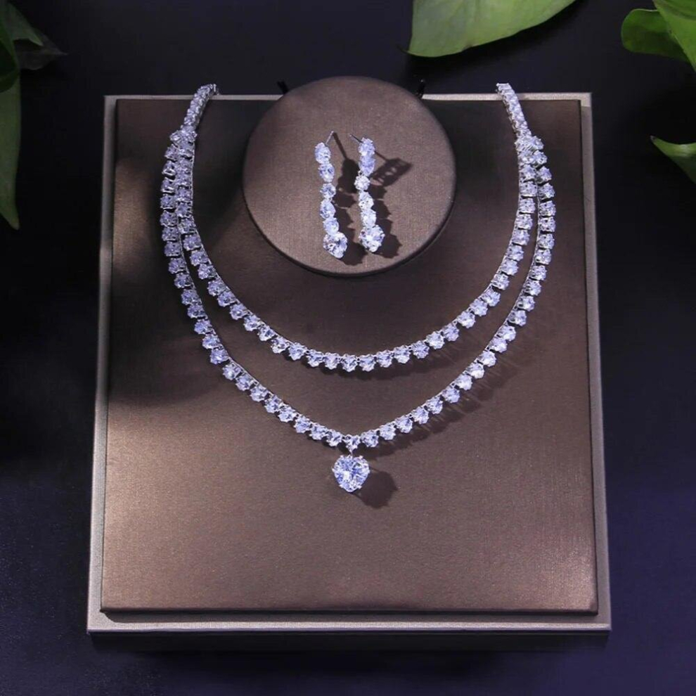 Sparkling Cubic Zirconia Bridal Jewelry Sets Wedding Silver CZ Heart Necklace and Earring Set Jewellery for Women