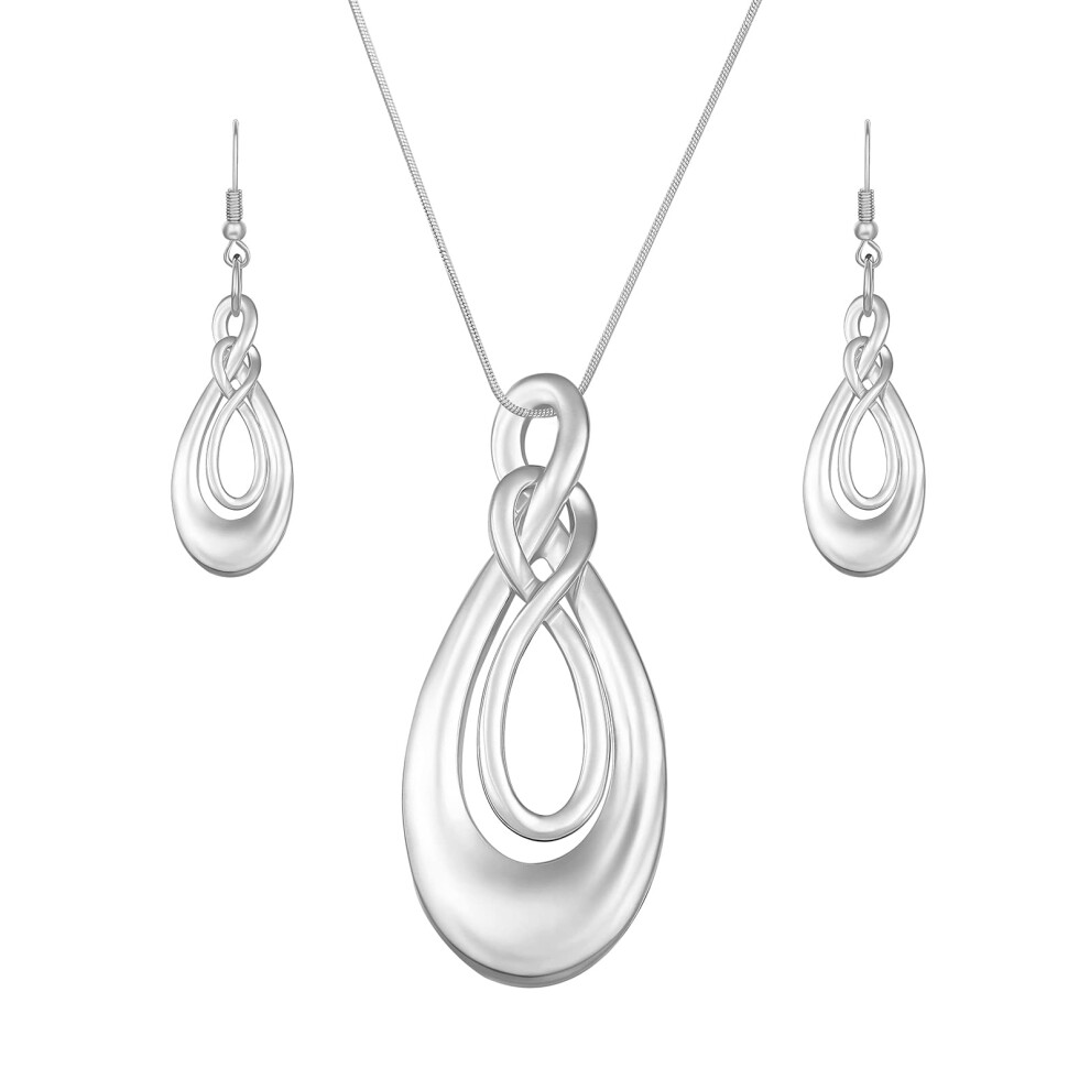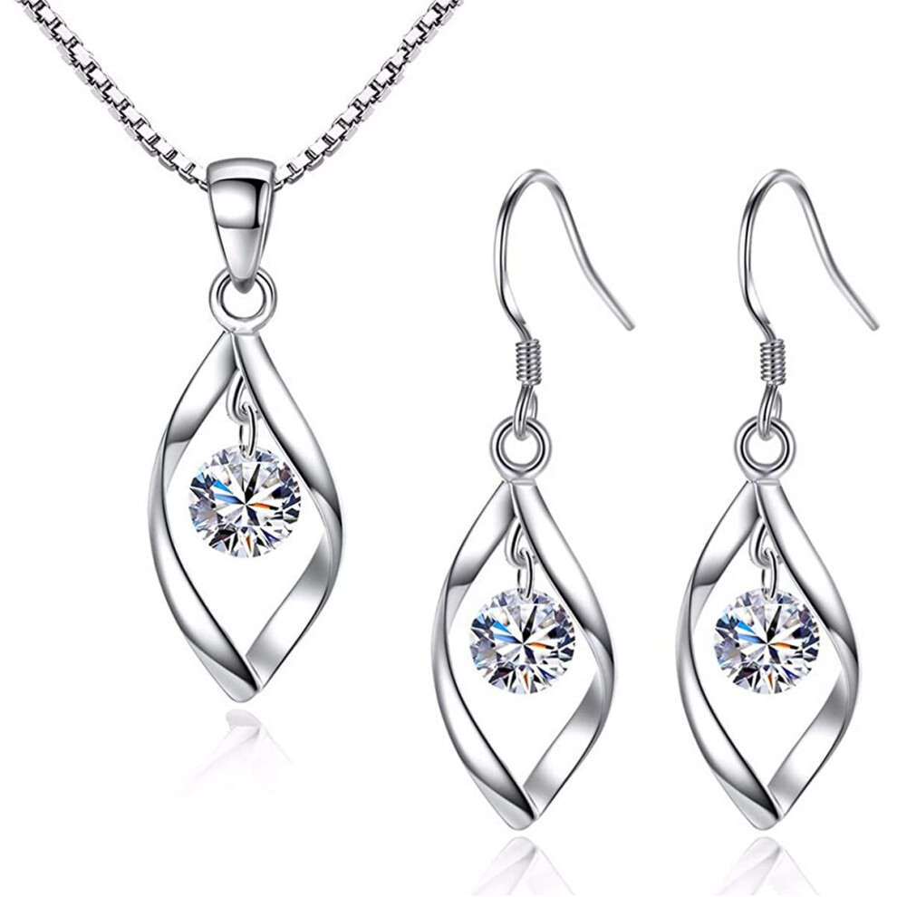 Zolkamery Silver Jewellery Set for Women, 925 Sterling Silver Twist Pendant Necklace and Drop Hook Earring