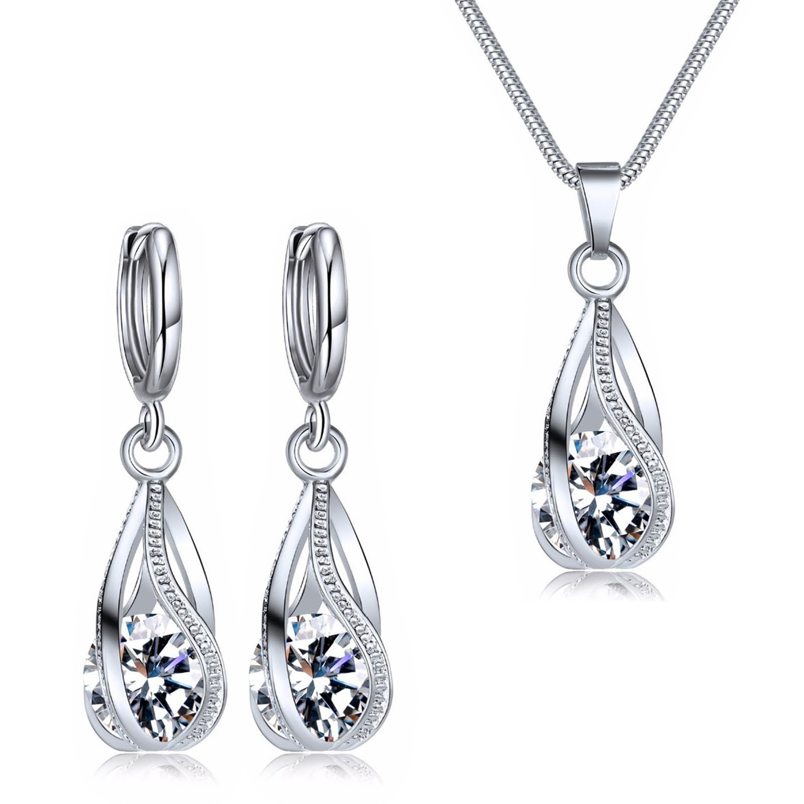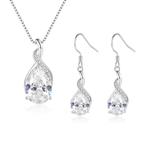 Loutade Women's Jewellery Sets, 925 Sterling Silver Necklace and Earring Sets for Women Bridesmaid, Infinity White Teardrop Cubic Zircon Silver Jewellery Set with Gift Box for Birthday Mother's Day