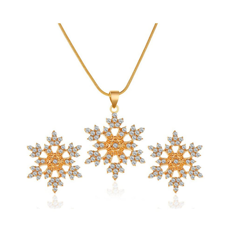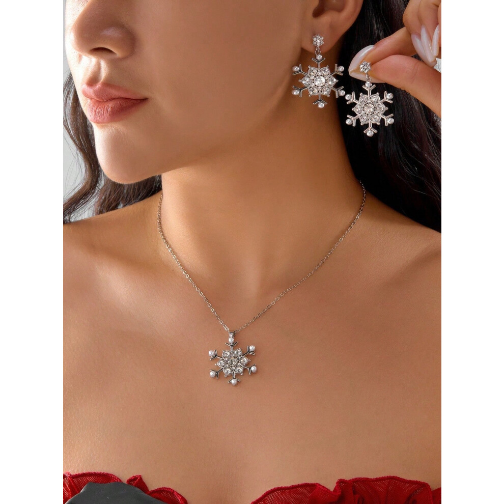 Christmas Snowflake Necklace and Earring Set for Women, Winter Snowflake Floral Pendant Necklace, Crystal Snowflake Stud Earrings, Silver Holiday Gift