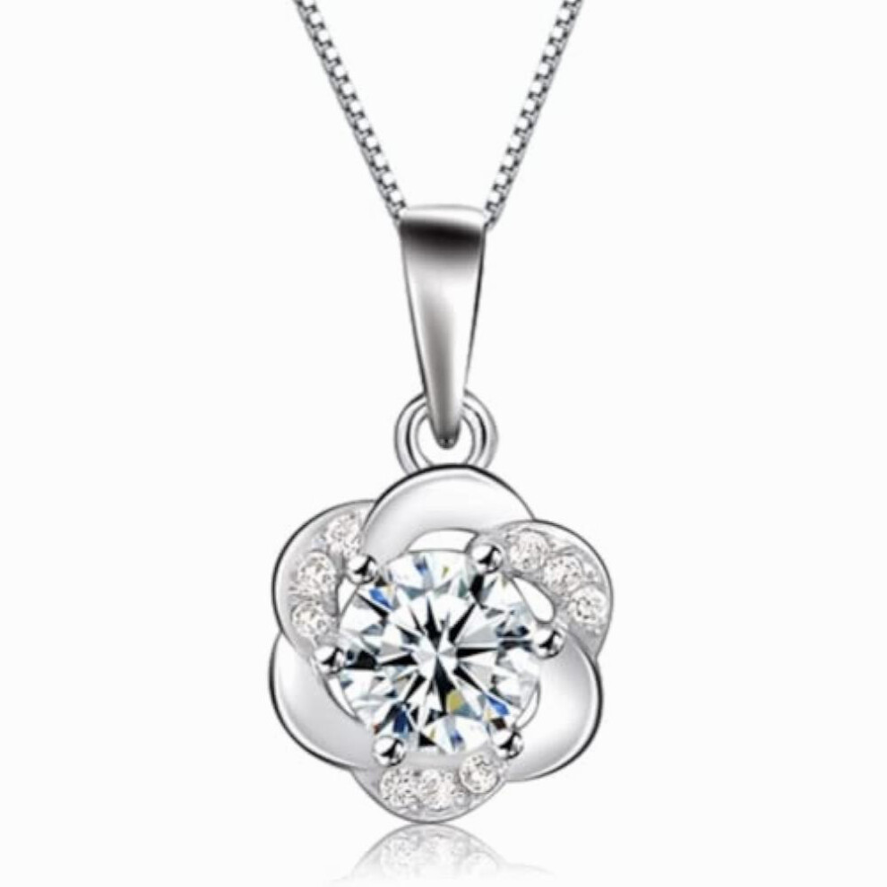 Silver Plated Floral Pendant Jewelry Set Paved Zirconia, Necklace And Earring Set, Flower For Girls, Earring, Twisted