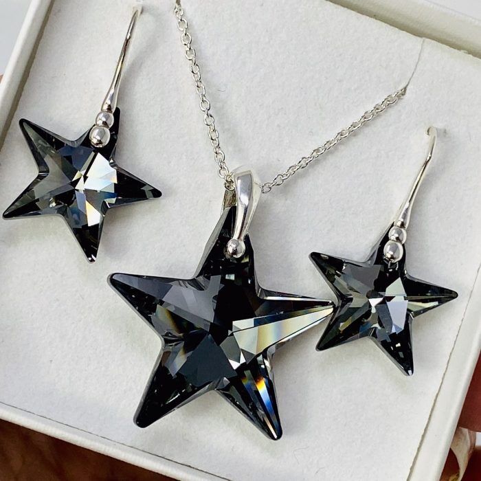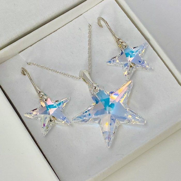 Sterling Silver AB Star Necklace And Earring Set Made With Austrian Crystals