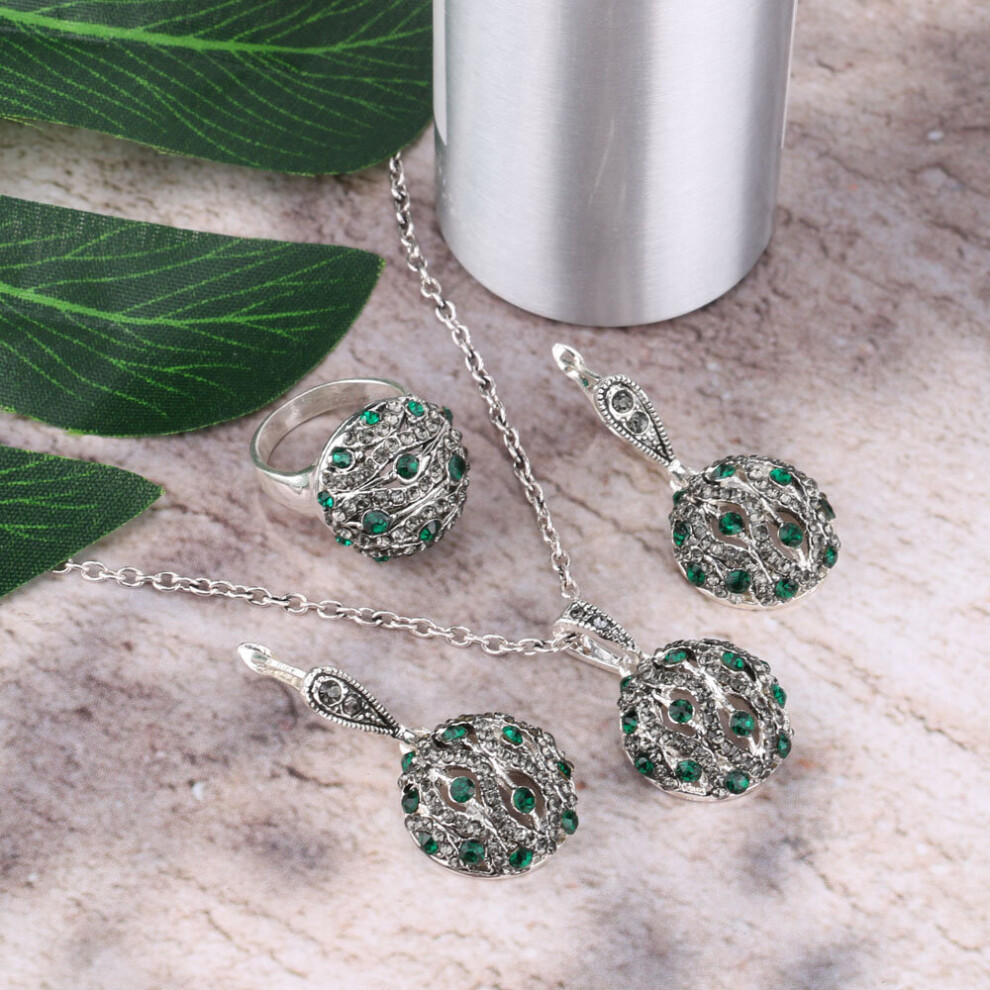 (Light Yellow Gold Color, 8) Kinel Crystal Ball Jewelry Sets For Women Silver Round Ring Earring And Pendant Necklace Wedding Jewelry Set